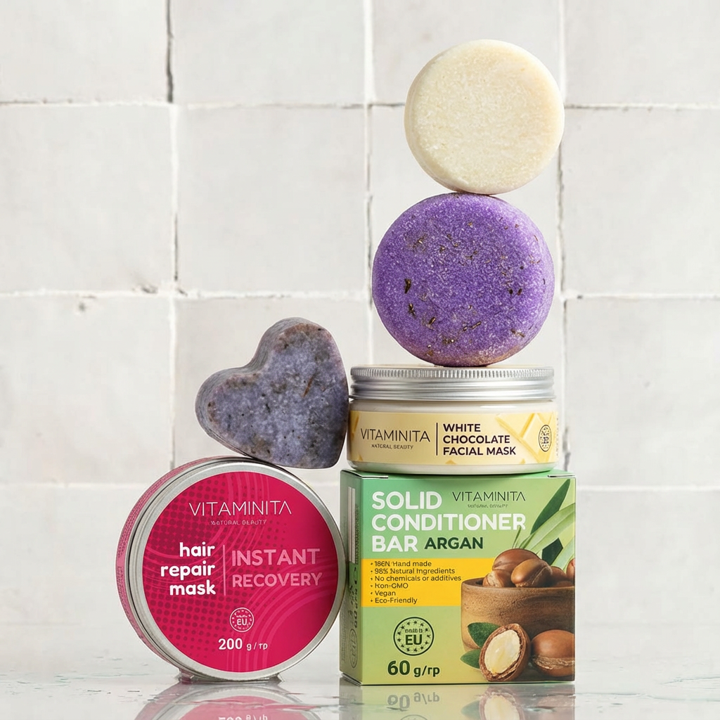 Твърдият шампоан с лавандула и балсам с арган подхранват, овлажняват и правят косата мека и лесна за разресване.
