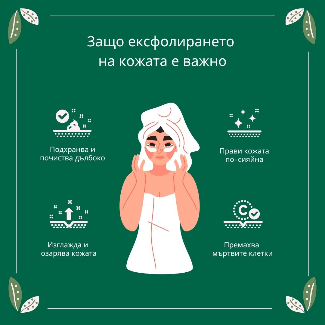 – Нежно, но ефективно премахва мъртвите клетки и стимулира кръвообращението.